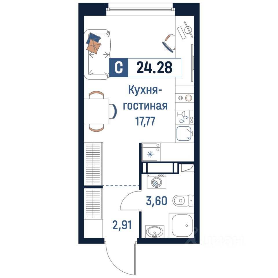 Общая площадь24,28 м²