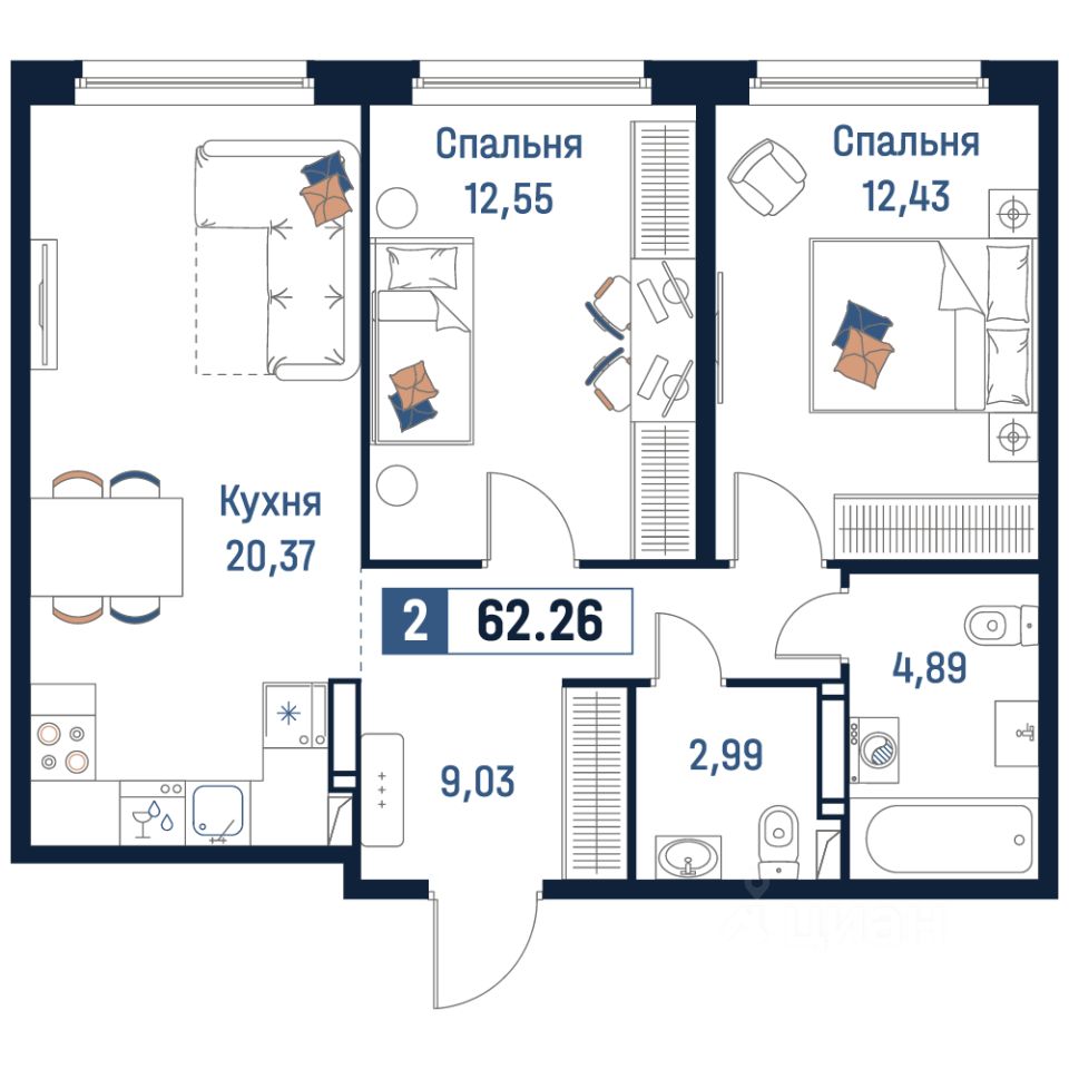 Общая площадь62,26 м²