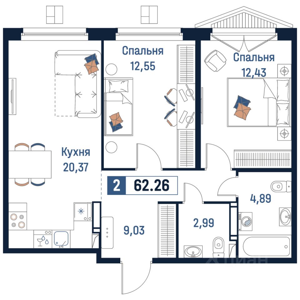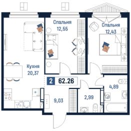 Общая площадь62,26 м²