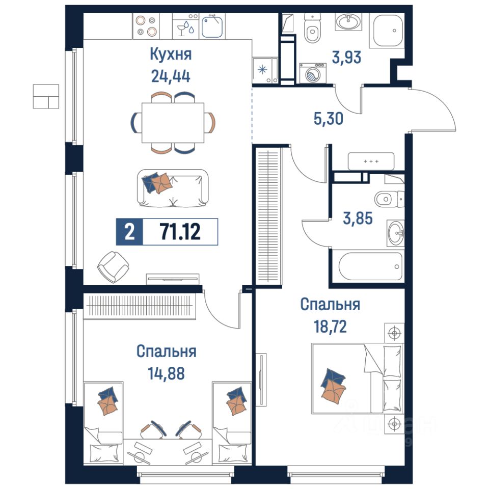 Общая площадь71,12 м²