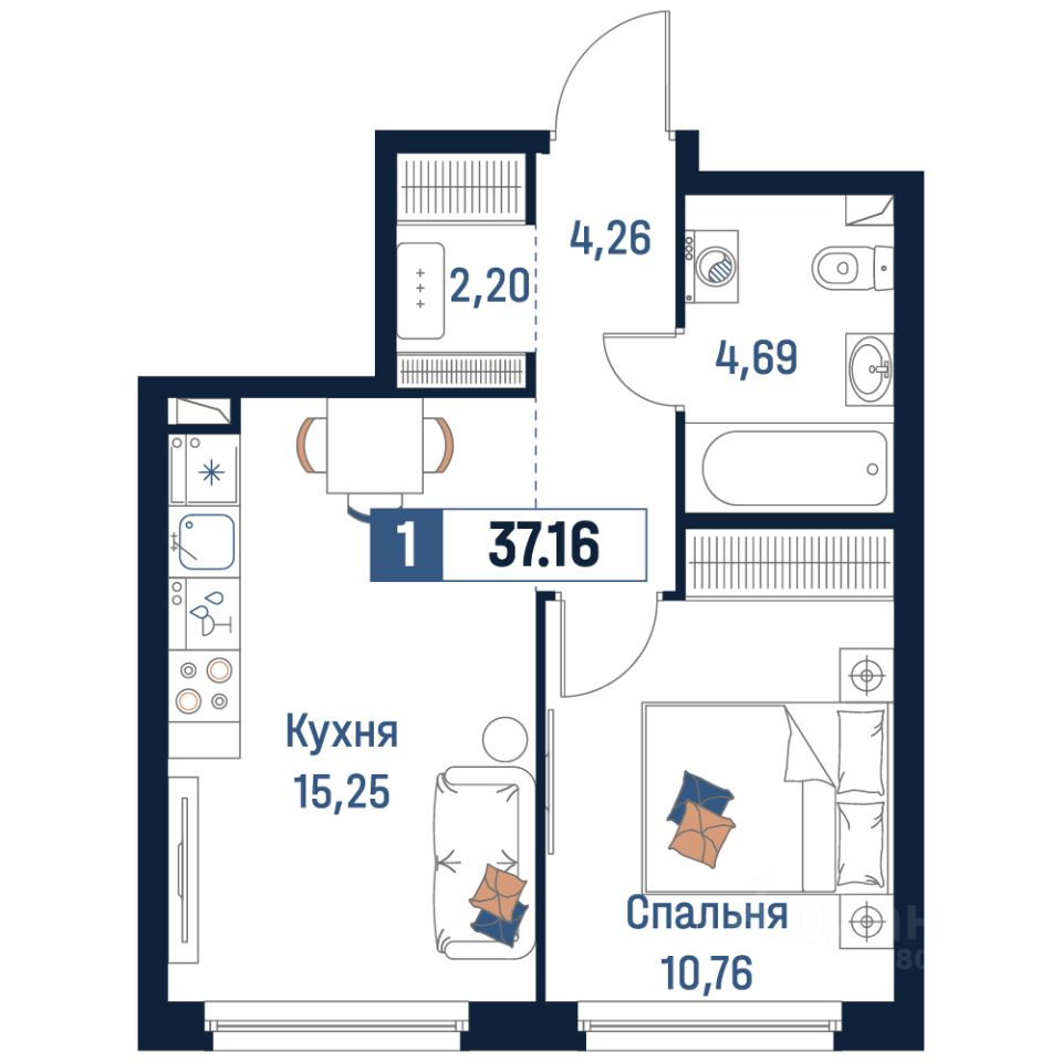 Общая площадь37,16 м²