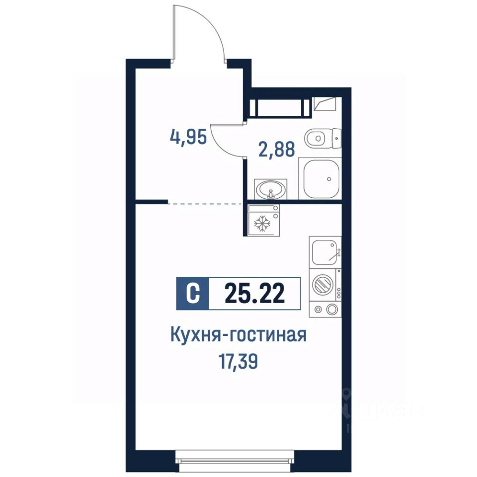 Общая площадь25,22 м²