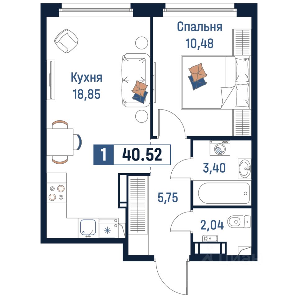 Общая площадь40,52 м²