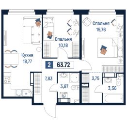 Общая площадь63,72 м²
