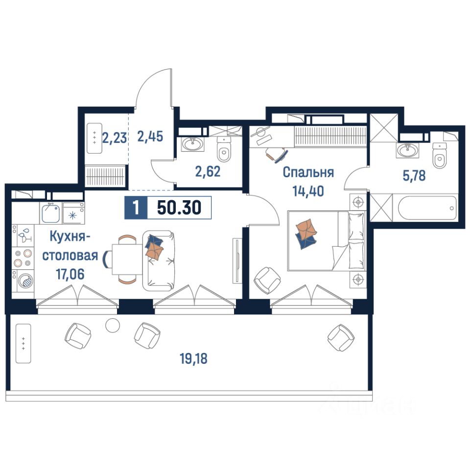 Общая площадь50,3 м²