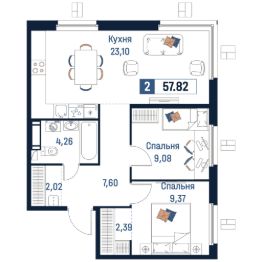 Общая площадь57,82 м²