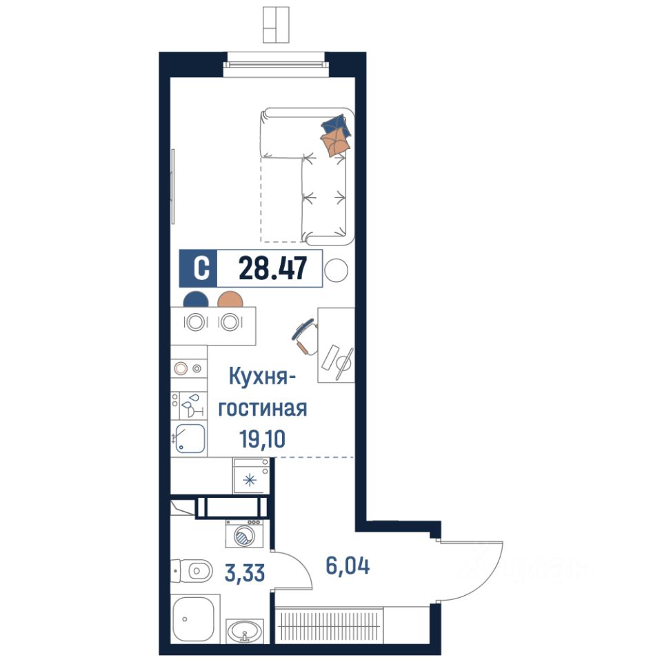 Общая площадь28,47 м²