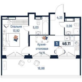 Общая площадь46,11 м²