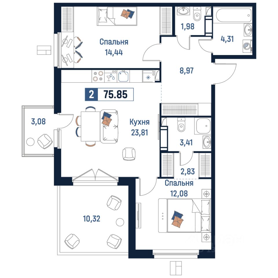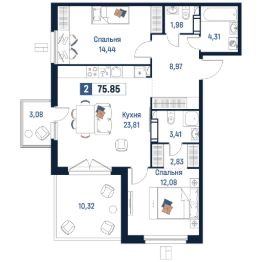 Общая площадь75,85 м²