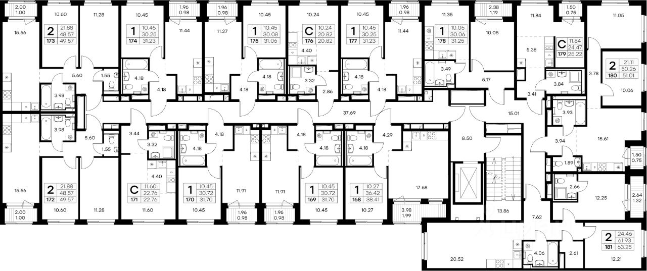 Продается 2-комн. квартира на 4-м этаже в строящемся проекте комфорт-класса GloraX Новоселье. Общая площадь лота составляет 51,01 кв. м, из которых 21,11 кв. м отведено под жилую и 15,61 кв. м под кухонную зону. Номер квартиры - 180