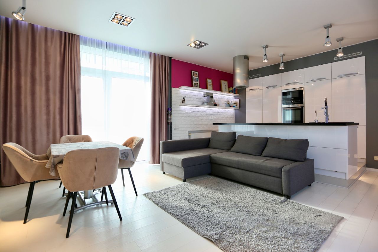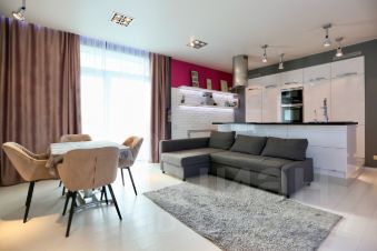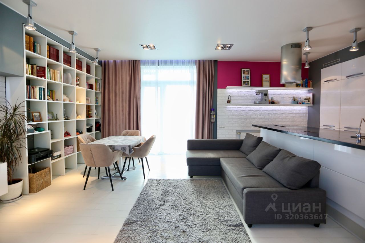Общая площадь составляет 94 кв. м, жилая площадь — 36 кв. м, кухня гостинная — 40 кв. м. Квартира расположена на 18 этаже 26-этажного кирпичного дома, построенного в 2010 году. Высота потолков — 2.9 метра, что создает ощущение простора и света.