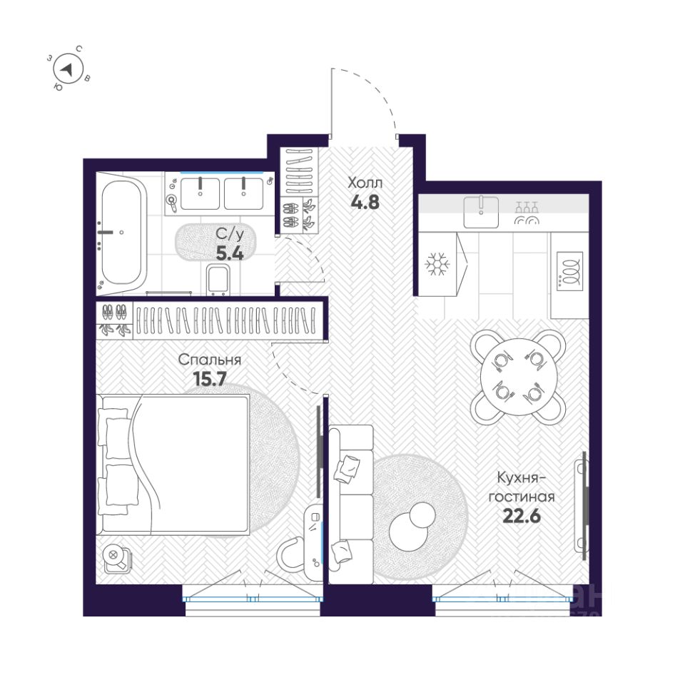 22,6 м²