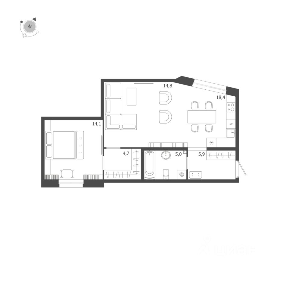 18,4 м²