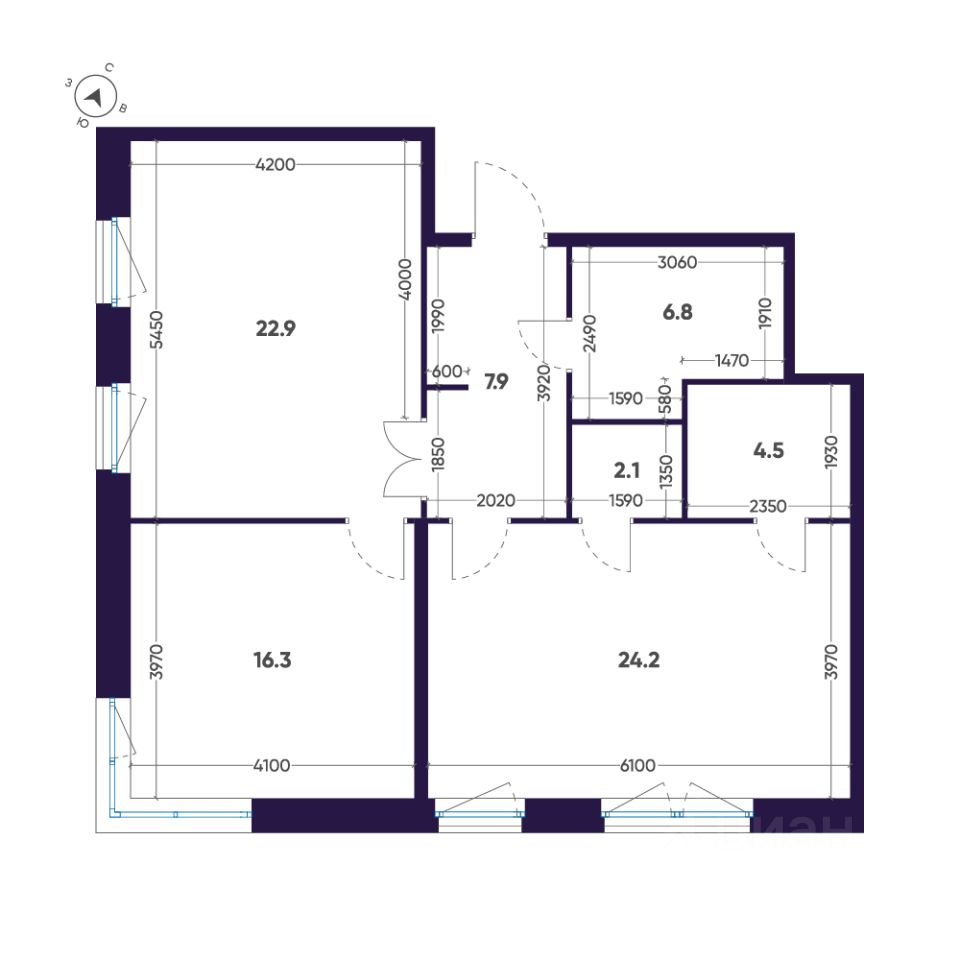 22,9 м²