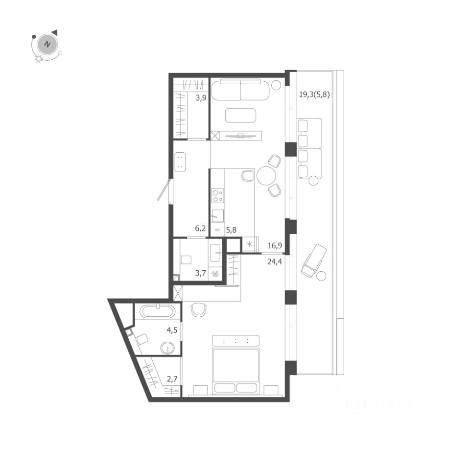24,4 м²