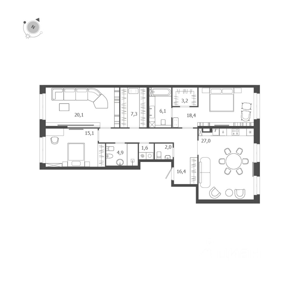 122,1 м²