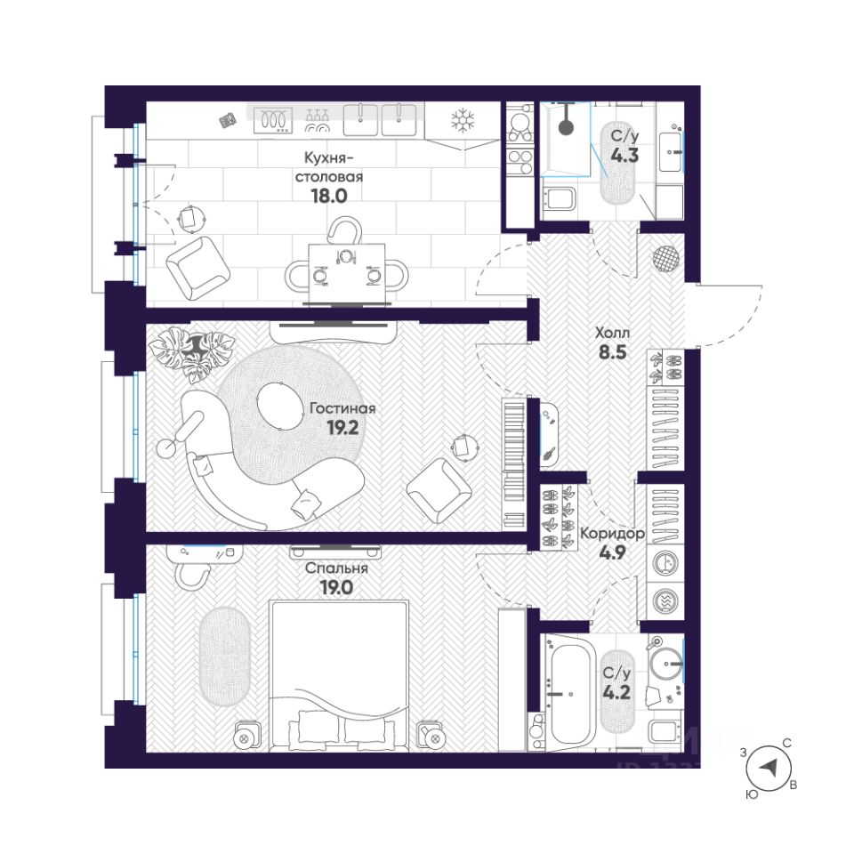 Продается квартира 58, по адресу г. Санкт-Петербург, Адмиралтейский район, набережная реки Пряжки участок 18 (севернее дома 7а, литера А), корпус Мариинка Deluxe в Мариинка Deluxe на 3 этаже, с площадью 78.1 м2.