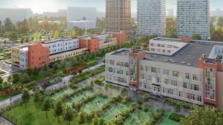 На территории комплекса находятся наземные паркинги, гостевые парковки, детский сад, школа. В пешей доступности расположены магазины, кафе, аптеки и прочие удобства, необходимые для спокойной и комфортной жизни. Во дворах устроены пешеходные зоны, дворы озеленены и благоустроены: имеются тенистые аллеи, уютные зоны для отдыха детей и взрослых, а также стильные плей-хабы.