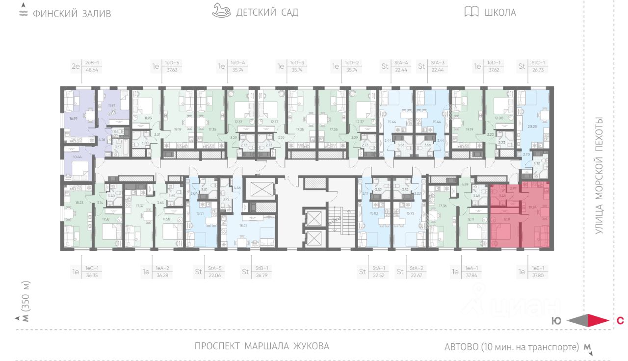 Продается 1-комнатная квартира в ЖК "Морская миля" на 17 этаже. Общая площадь составляет 37.80 кв. м. Квартира с чистовой отделкой. Жилой комплекс "Морская миля" располагается по адресу Санкт-Петербург, Красносельский.