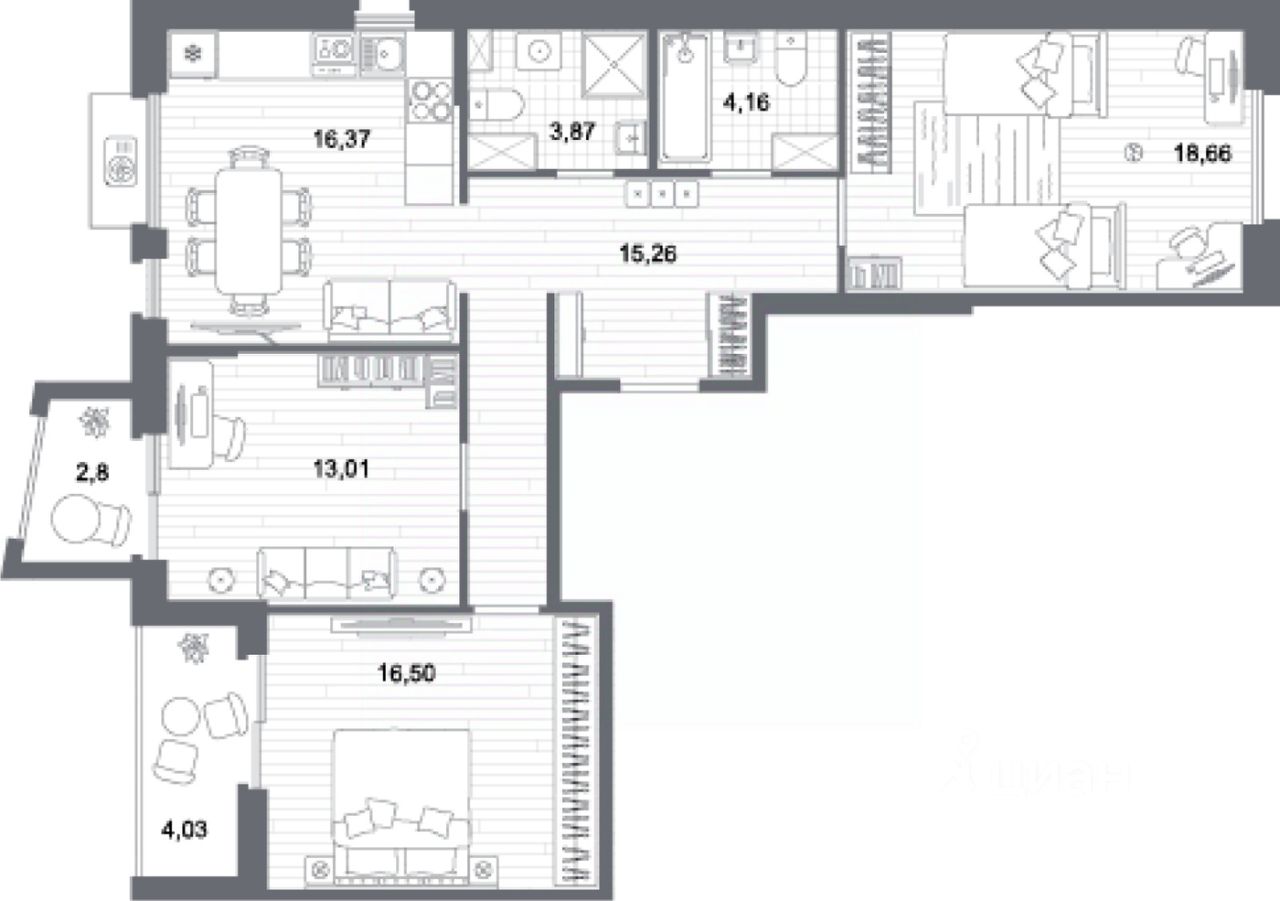 Продается 3-комн. квартира от застройщика с предчистовой отделкой в ЖК "RESPECT" на 9 этаже. Общая площадь: 90.69 кв.м., жилая: 48.17 кв.м., площадь просторной кухни-столовой: 16.37 кв.м. Квартира - распашонка, без проходных комнат, окна выходят на paзные стороны дома. В квартире один балкон и одна лоджия, один совмещенный и один раздельный санузел. Высота потолков 2.7 м.