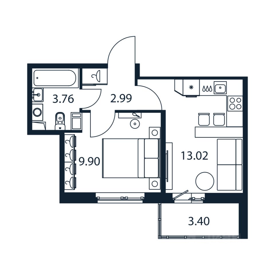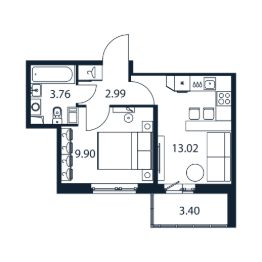 Прямая продажа от застройщика! Готовая Евро-двушка 29.1 кв.м с кухней 13.02 кв.м с предчистовой отделкой на 12 этаже в сданном ЖК "Полис Лаврики".