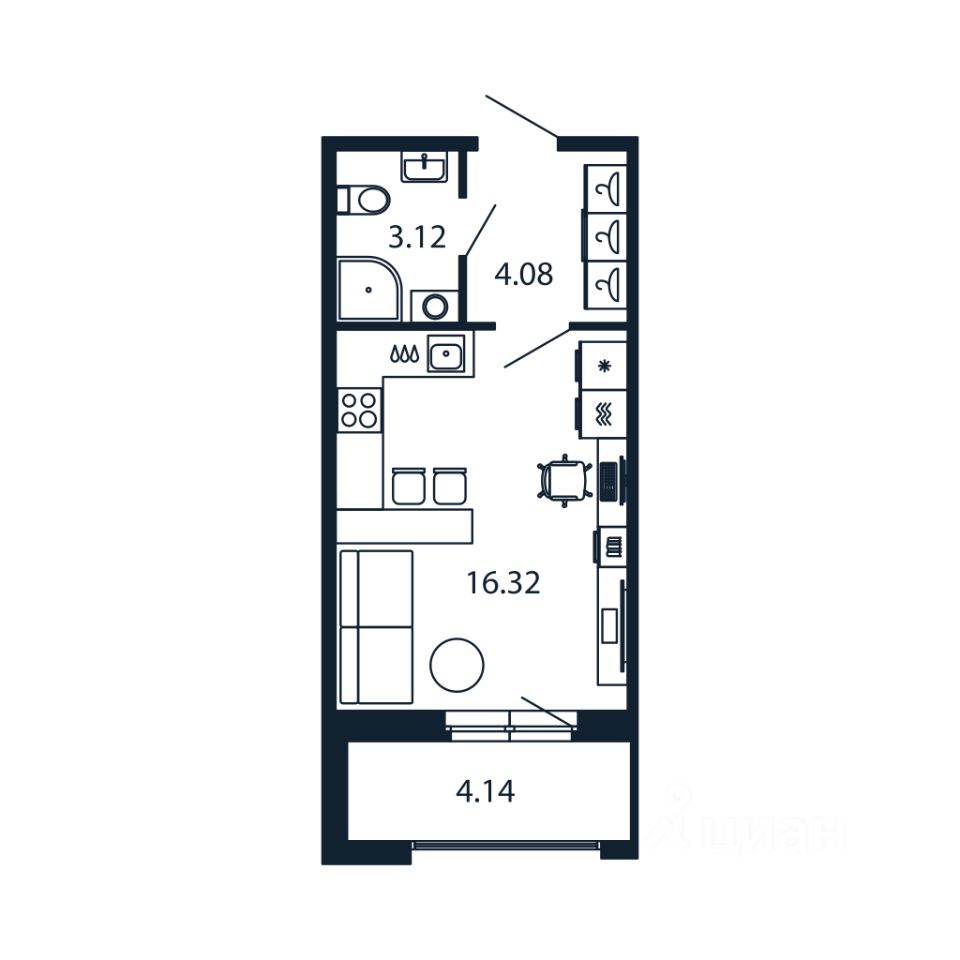Прямая продажа от застройщика! Готовая Студия 23.2 кв.м с чистовой отделкой на 10 этаже в сданном ЖК "Полис Новоселье".