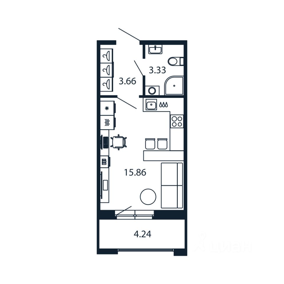 Прямая продажа от застройщика! Готовая Студия 22.5 кв.м с чистовой отделкой на 12 этаже в сданном ЖК "Полис Новоселье".