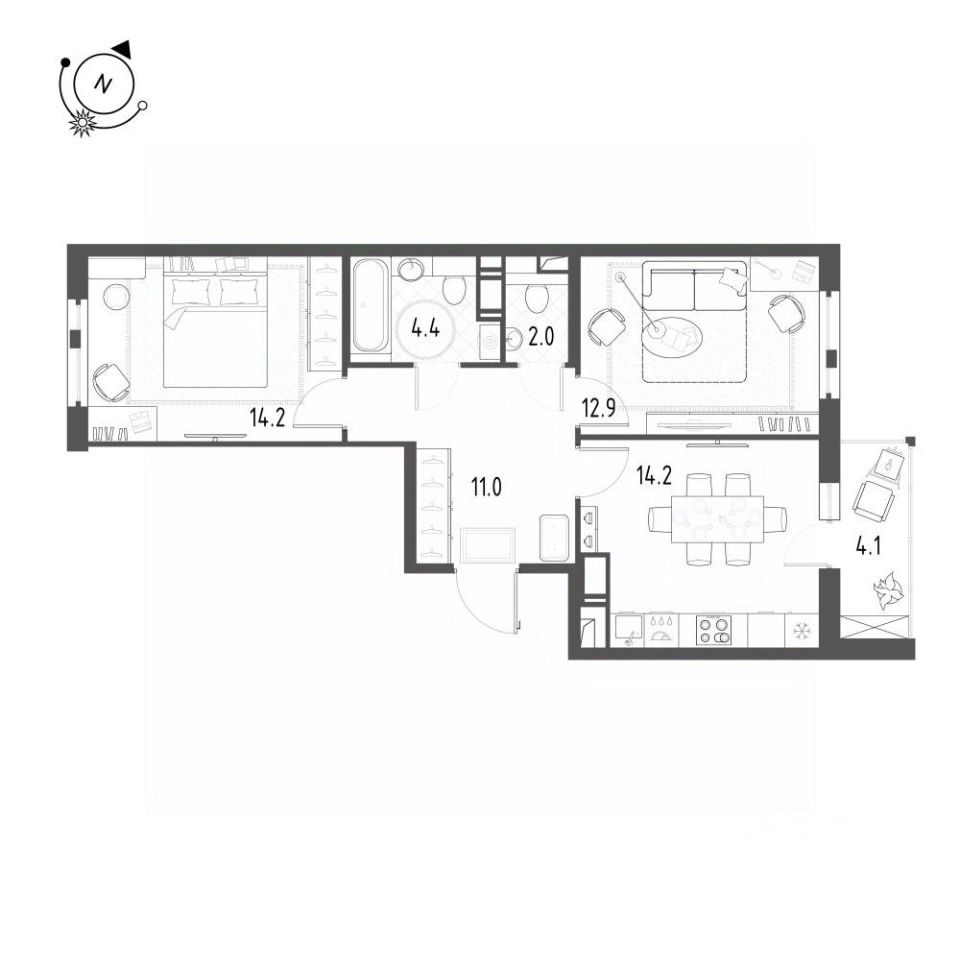 Продается квартира 472, по адресу г. Санкт-Петербург, поселок Шушары, Чудовская улица, дом 14, корпус 1, строение 1, корпус ЖК Монография в Монография на 12 этаже, с площадью 60.8 м2.