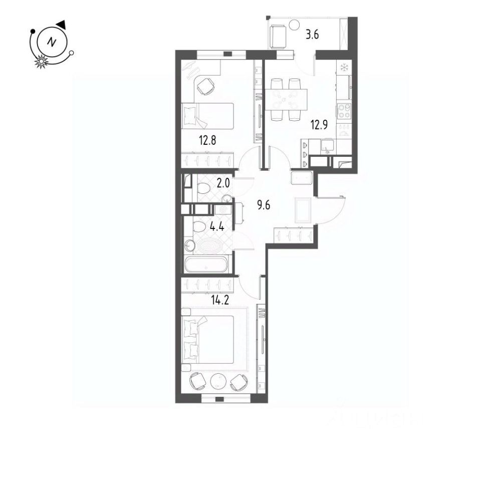 12,8 м²