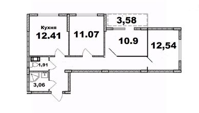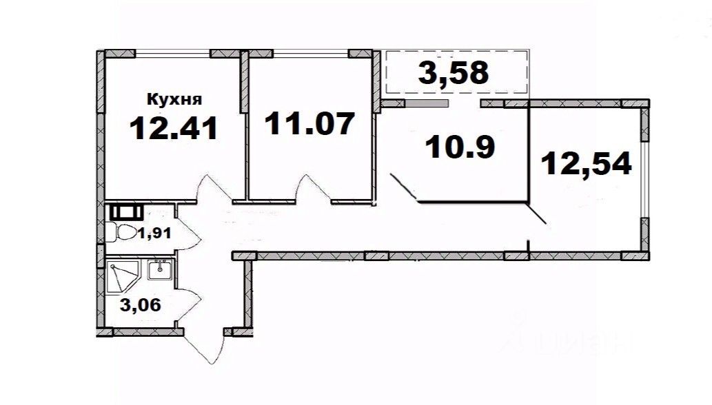 Все комнаты правильной формы, кухня 12 метров, балкон.