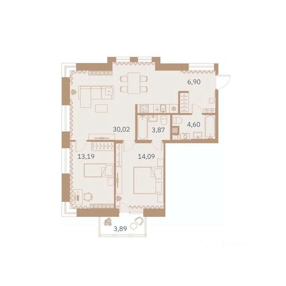 Общая площадь73,07 м²