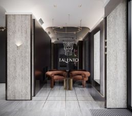 При разработке проекта архитектурная мастерская Юсупова гармонично вписала жилой дом в окружающую застройку, использовав краснокирпичную облицовку и элементы декора в стиле модерн. В оформлении проекта принимает участие и знаменитый художник с мировым именем Михаил Шемякин. Маскароны из его коллекции "Метафизические головы" будут украшать главный фасад Talento. А интерьеры дома разработаны по проекту Олега Клодта потомка петербургского скульптора времен царствования Николая I.