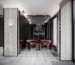При разработке проекта архитектурная мастерская Юсупова гармонично вписала жилой дом в окружающую застройку, использовав краснокирпичную облицовку и элементы декора в стиле модерн. В оформлении проекта принимает участие и знаменитый художник с мировым именем Михаил Шемякин. Маскароны из его коллекции "Метафизические головы" будут украшать главный фасад Talento. А интерьеры дома разработаны по проекту Олега Клодта потомка петербургского скульптора времен царствования Николая I.
