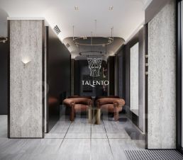 При разработке проекта архитектурная мастерская Юсупова гармонично вписала жилой дом в окружающую застройку, использовав краснокирпичную облицовку и элементы декора в стиле модерн. В оформлении проекта принимает участие и знаменитый художник с мировым именем Михаил Шемякин. Маскароны из его коллекции "Метафизические головы" будут украшать главный фасад Talento. А интерьеры дома разработаны по проекту Олега Клодта потомка петербургского скульптора времен царствования Николая I.