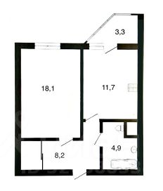- 1 большая, изолированная комната с зонированием 18,1 кв.м,