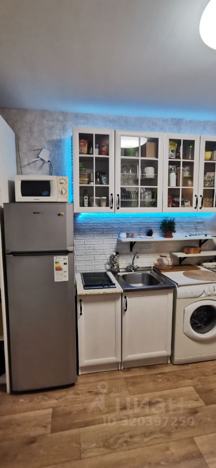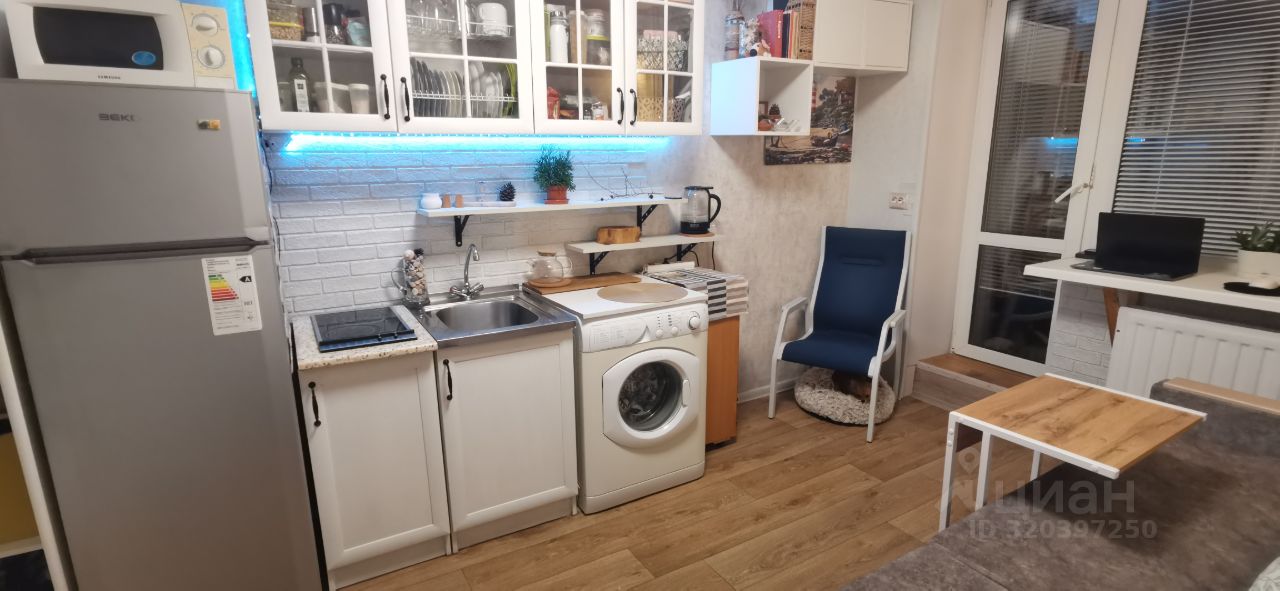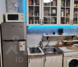 Пространство продумано: кухонный гарнитур, варочная поверхность, холодильник, стиральная машина, диван, 3 шкафа — всё остаётся вам!