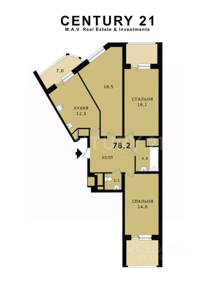 Уникальная планировка квартира спроектирована с умом: изолированные спальные пространства + просторная кухня с выходом на лоджию.