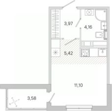 Жилая площадь11,1 м²