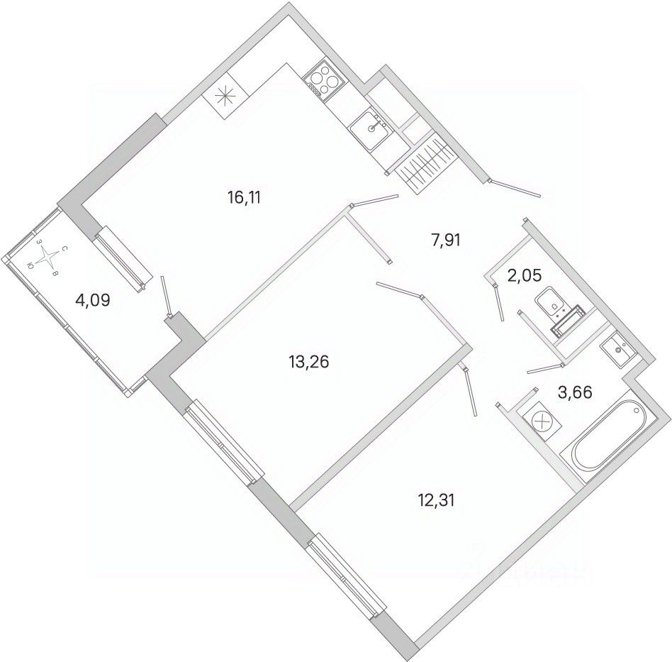 Площадь кухни16,1 м²