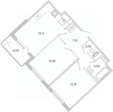 Общая площадь57,35 м²