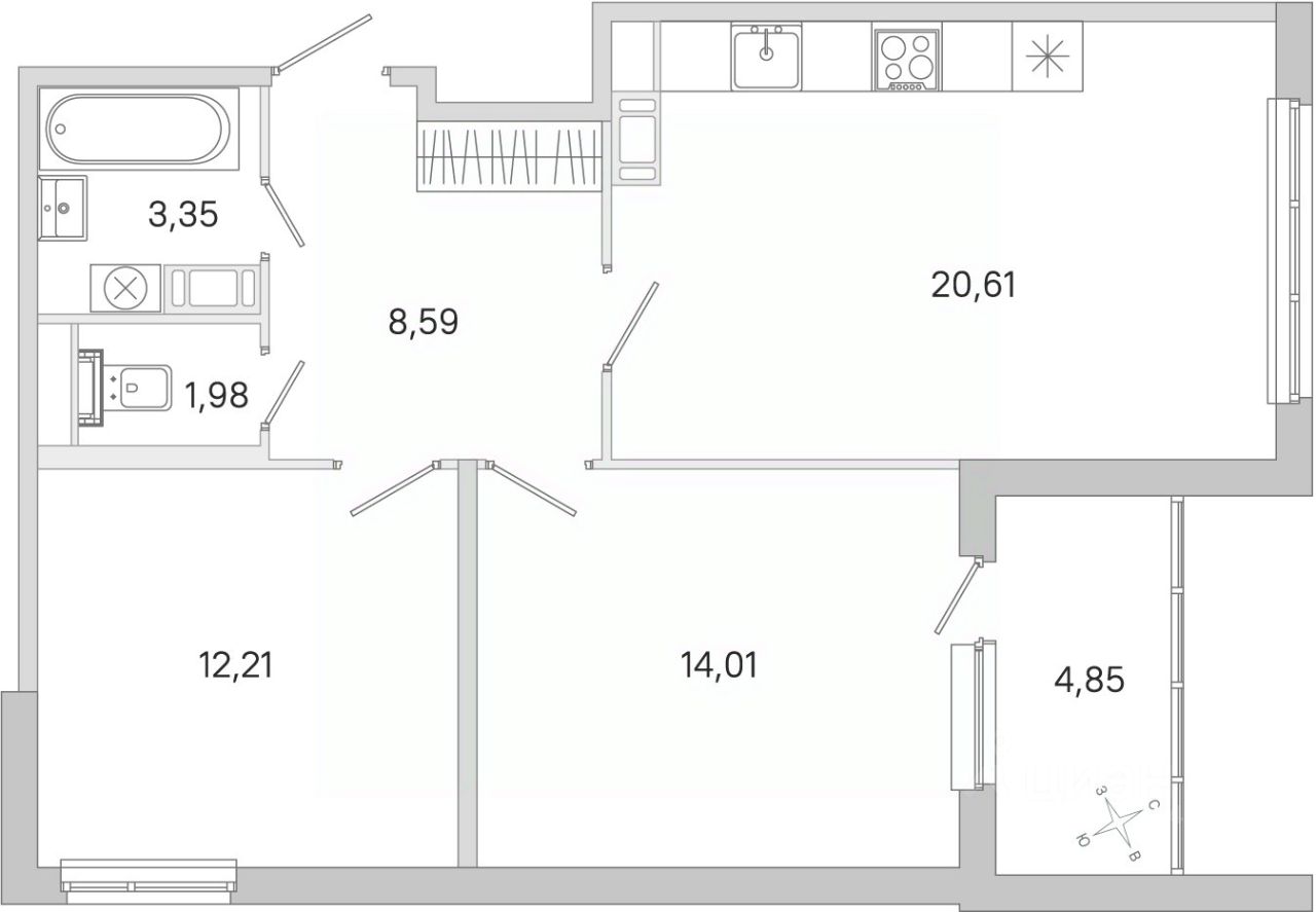 Общая площадь60,75 м²