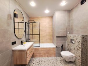 Квартира с евроремонтом 2023 года (никто не жил после ремонта). Выровненные стены, натяжные потолки, ламинат, в зоне кафельного пола электрический подогрев, установлена встроенная кухонная мебель и техника. Все комнаты изолированы, две утепленные лоджии, гардеробная, два полноценных сан. узла, сауна. Квартира двухсторонняя с выходом окон во двор и на улицу, на Суздальские озера, по сторонам света: запад-восток.