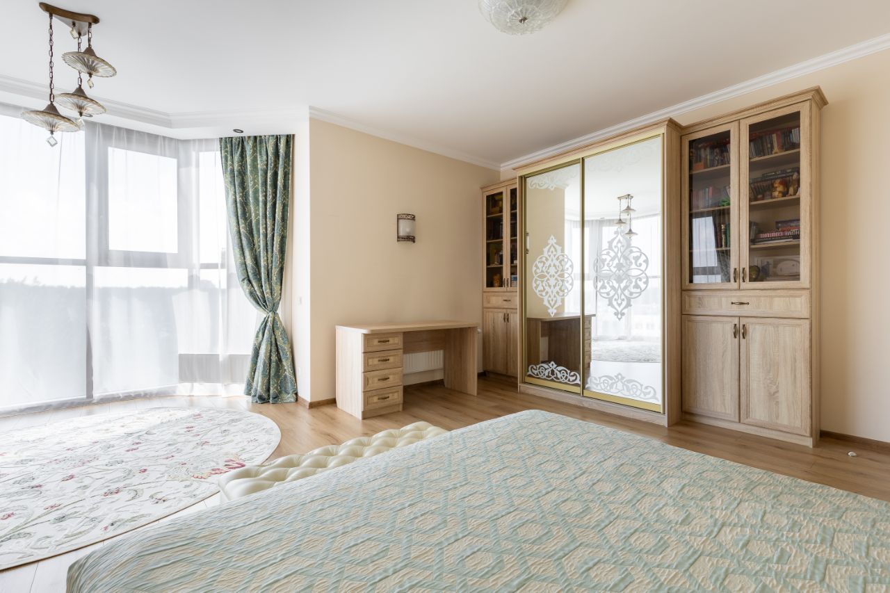 В квартире три изолированных спальни и просторная кухня-гостиная для большой семьи. Изюминка планировки - это эркер с панорамным видом на город и парк Сосновка. Идеальное место для медитации, чтения книги и просто минуты наедине с собой.