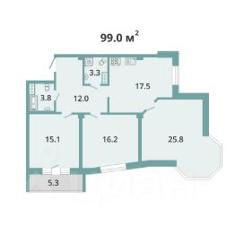 Площадь квартиры с учетом балкона - 99 м2.