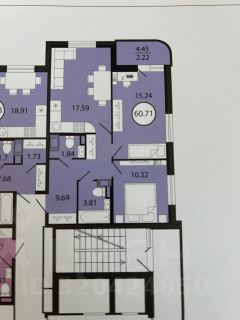 Общая площадь 61 кв/м. Приведенная (без лоджии) 58,6
