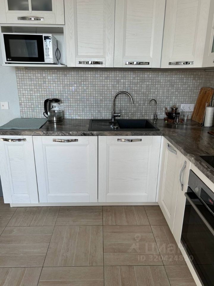 Установлен шикарный кухонный гарнитур выполненный по итальянскому дизайну, фасады из массива. Мойка из искусственного гранита Blanco. Техника - bosch (плита, духовка, посудомоечная машина). Сантехника Grohe и Am.Pm. Из окон отличный вид.