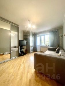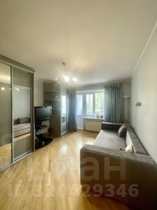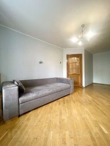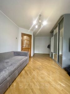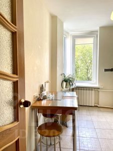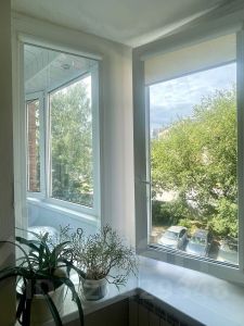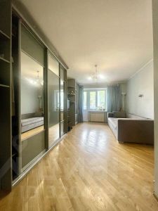 В комнате имеется место для зонирования пространства. Можно оборудовать две уютные спальни. Из комнаты выход на просторную застекленную лоджию. Окна выходят в зеленый двор.
