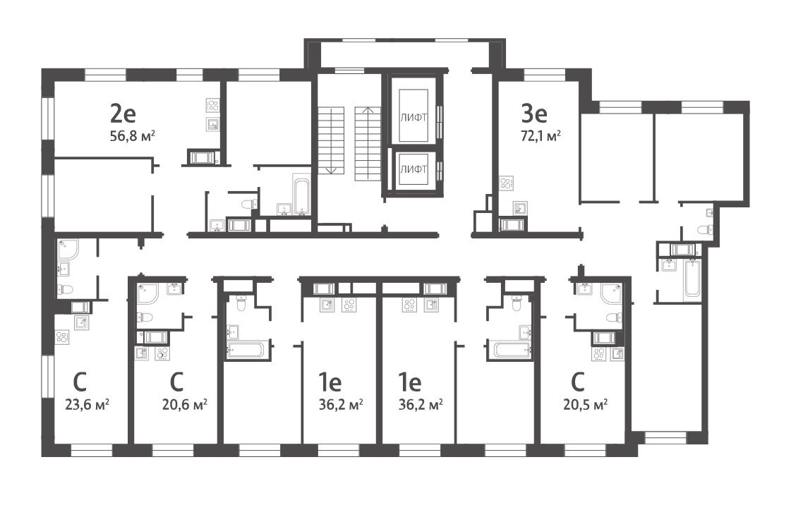 Горизонтальная разводка труб водоснабжения и отопления и вынесенные в холлы счетчики сохранят эстетичный дизайн комнат. Встроенные клапаны инфильтрации воздуха будут поддерживать чистоту и свежесть воздуха.