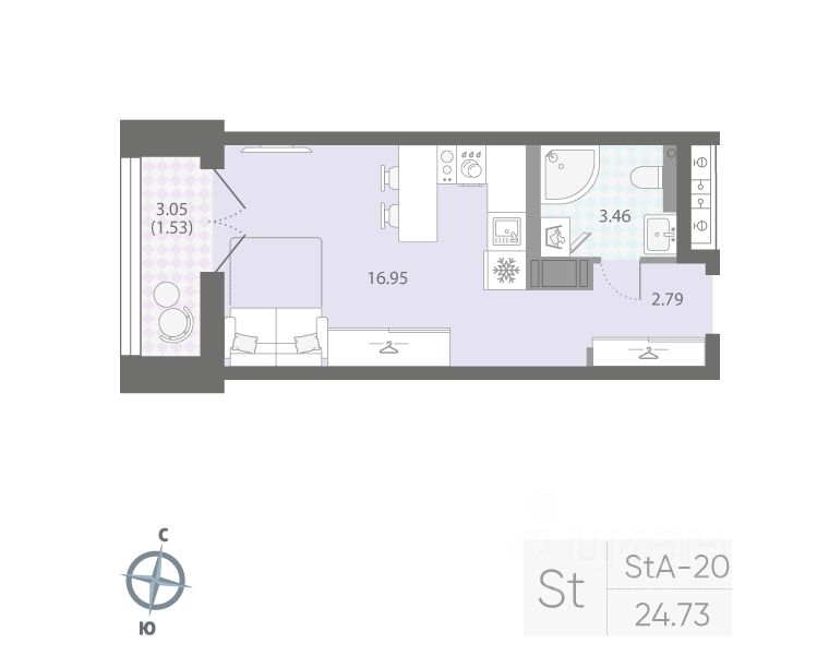 Продаётся студия в ЖК "Цивилизация на Неве" на 9 этаже. Общая площадь составляет 24.73 кв. м. Квартира с white box отделкой. Жилой комплекс "Цивилизация на Неве" располагается по адресу Санкт-Петербург, Невский.