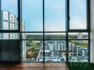 В квартире большие окна, дающие много света. Есть просторная и глубокая лоджия с панорамным остеклением, которую при желании можно утеплить и оборудовать полноценную зону для отдыха или работы.